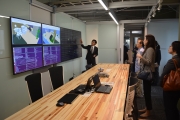伊都キャンパス内に設置されている14基のP-Senを参加者に紹介いたしました。それぞれ違った場所に設置されたP-Senからどのような人流データがリアルタイムで取得でき、取得したデータをどのように使うのか説明を行いました。